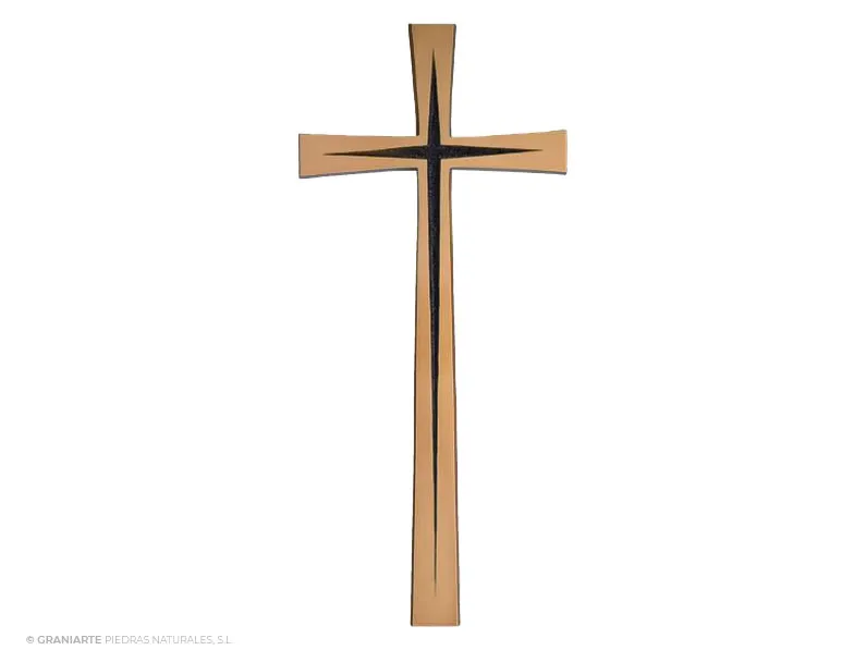 Cruz fabricada en bronce con formato de aplique para fijar a superficie.