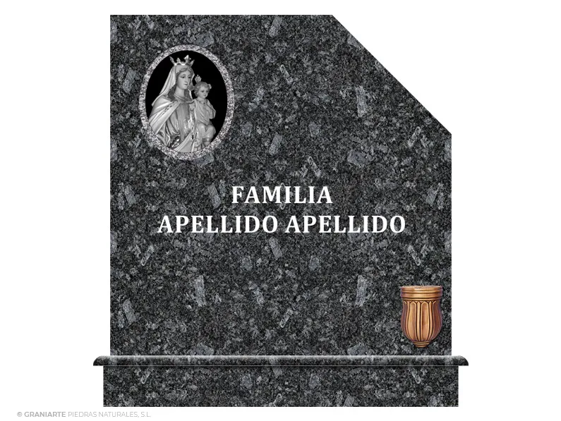 Los ornamentos funerarios no están incluidos en el precio. Añada a su pedido los mostrados u otros de su elección que encontrará en nuestra tienda para complementar la decoración de su frente para panteón. En Graniarte el diseño es personalizado y la fabricación propia. Si tiene alguna duda o no encuentra lo que desea consúltenos sin compromiso, podemos adaptarnos a sus necesidades.