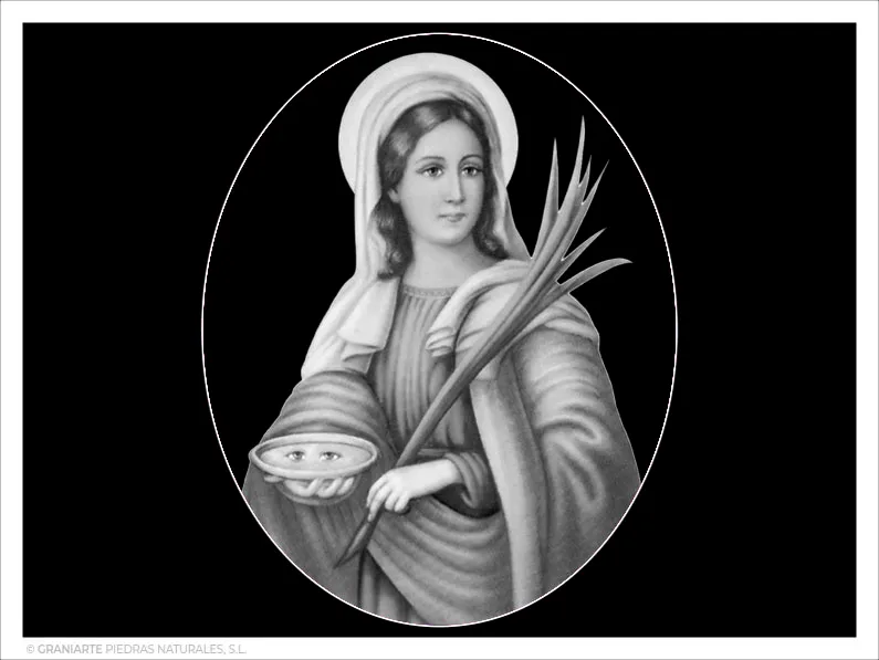 Imagen de Santa Lucia grabada con tecnología láser en color blanco.