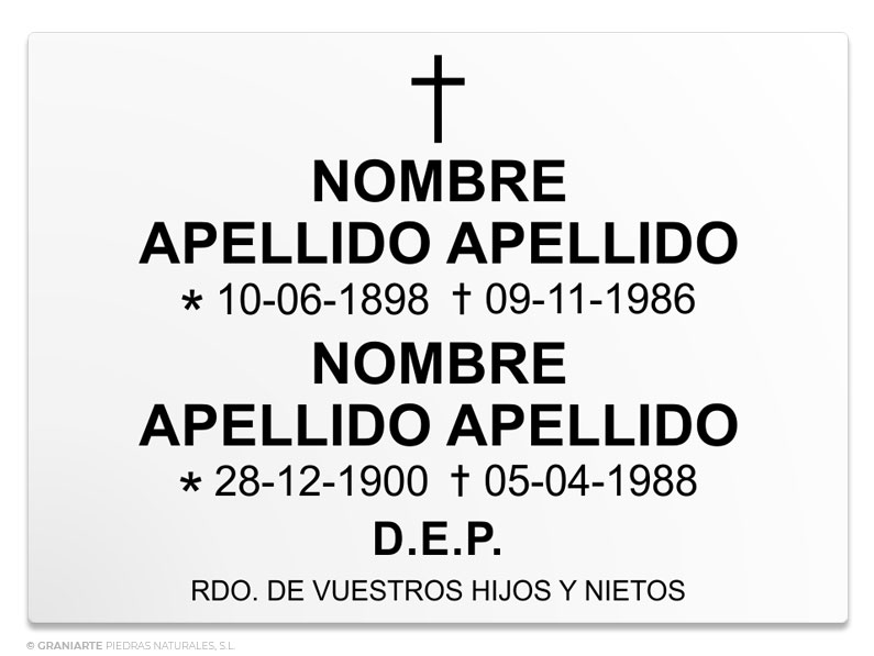 Placa funeraria blanca para dos nombres.